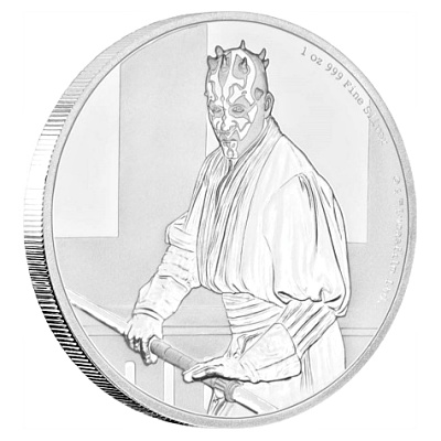 Das Motiv der Silbermünze nimmt den Showdown des Films zum Vorbild. Es zeigt den Sith-Lord in Kampfhaltung mit seinem Markenzeichen, dem Lichtschwert mit den zwei Klingen, in der Hand. Das lizenzierte Produkt der Lucasfilm Ltd hat einen Durchmesser von 40 Millimetern und enthält 1 oz Feinsilber (Feingehalt 999/1000). Der Münzrand ist geriffelt. Die Wertseite zeigt das Porträt von Königin Elizabeth II., daneben den Nennwert von zwei Dollars. Ausgabeland ist die Insel Niue. Das Sammlerstück ist in höchster Proof-Qualität geprägt und wird verpackt in ein schwarzes Etui mit Star-Wars-Schriftzug ausgeliefert. Ein nummeriertes Echtheitszertifikat gibt es dazu.