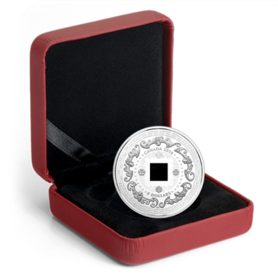 So vereint das Sammlerstück gleich mehrere traditionelle chinesische Symbole. Ein Symbol für Kanada ist dagegen das umseitig zu findende Porträt von Königin Elizabeth II., des kanadischen Staatsoberhauptes. Es ist wegen der Aussparung nach oben verschoben und in einen Kreis von Blüten integriert. Die Silbermünze hat einen Durchmesser von 36 Millimetern und ein Gewicht von 20,86 Gramm. Der Feingehalt liegt bei 99,99 Prozent. Der Münzrand ist geriffelt. Sie ist in höchster Proof-Qualität geprägt. Gekapselt, im Etui und mit nummeriertem Echtheitszertifikat ist diese Silbermünze eine Glück verheißende Geschenkidee für alle Asienfans.