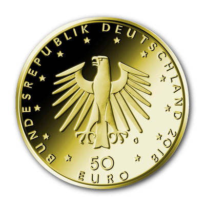 Auf der Wertseite sind der Bundesadler und die Europasterne zu sehen. Unten ist der Nennwert von 50 Euro zu finden, am Rand entlang die Aufschrift „Bundesrepublik Deutschland“. Der Münzrand ist geriffelt. Die in Stempelglanz-Qualität geprägte Goldmünze hat einen Durchmesser von 20 Millimetern und einen Feingehalt von 99,99 Prozent. Sie enthält 1/4 oz Feingold. Die Auflage beträgt 250.000 Stück. Die neue Serie bildet eine Ergänzung zu den 100-Euro-Goldmünzen und den 20-Euro-Silbermünzen.