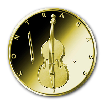 Das Thema wurde ausgewählt, da der Musikinstrumentenbau in Deutschland schon seit dem Mittelalter einen besonderen Stellenwert hat. Noch heute werden in Deutschland in Manufakturen erstklassige Instrumente hergestellt. Der Kontrabass als erstes Instrument dieser neuen Serie ist zwar im Orchester ein „Außenseiter“, spielt aber auch eine tragende Rolle. Das gilt nicht nur für die klassische Musik, sondern auch für Jazz und Rockabilly. Die Goldmünze stellt den Bass stolz in den Mittelpunkt. Daneben ist auch noch ein Bogen abgebildet. Auf der anderen Seite des Instruments findet man das Zeichen der jeweiligen Prägestätte: „A“ für Berlin, „D“ für München, „F“ für Stuttgart, „G“ für Karlsruhe oder „J“ für Hamburg.