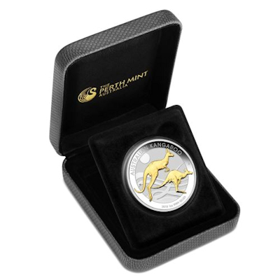 Auf dieser Ausgabe sind beide Kängurus liebevoll vergoldet. Zusammen mit der Proof-Prägung wird die Silbermünze so zum echten Blickfang. Sie hat einen Durchmesser von 40,6 Millimetern und enthält 1 oz Feinsilber (Feingehalt 99,99 Prozent). Der Münzrand ist geriffelt. Auf der Wertseite ist das Ian-Rank-Broadley-Porträt von Königin Eliabeth II. abgebildet. Der Nennwert liegt bei 1 australischen Dollar. Neben dem Etui gibt es zu diesem Sammlerstück auch einen Shipper mit einem goldenen Motiv im Retro-Look auf dunkelblauem Grund. Außerdem wird zu jeder Münze ein nummeriertes Echtheitszertifikat ausgegeben.