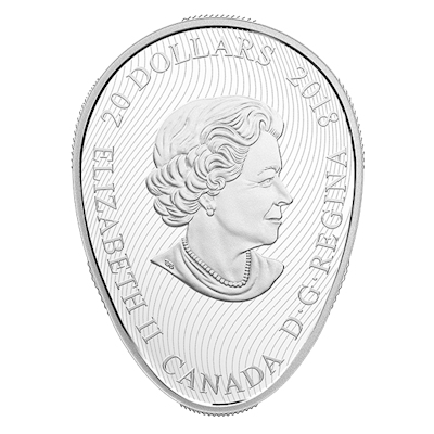 four-seasons-for-the-maple-leaf-1-oz-silber-vergoldet-wertseiteAuch das Ei gilt als Symbol für Erneuerung und Wiedergeburt, weshalb diese besondere Form für die Silbermünze gewählt wurde. Das Sammlerstück aus 1 oz Feinsilber (Feingehalt 99,99 Prozent) misst 45 mal 33 Millimeter. Es trägt den Nennwert von 20 CAD, der umseitig zusammen mit dem Susanna-Blunt-Porträt von Königin Elizabeth II. zu finden ist. Auf dem Münzrand wechseln sich glatte und geriffelte Abschnitte ab. Die Silbermünze wird gekapselt und im Etui ausgegeben. Ein nummeriertes Echtheitszertifikat gehört dazu. Die Auflage ist auf nur 4.000 Stück limitiert.