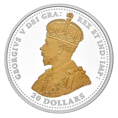 Das Motiv der Silbermünze zeigt deshalb keine Jubelszene und auch keinen heldenhaften Kampf. Fern der Schlachtlinie stehen zwei kanadische Soldaten in einer zerstörten Stadt. Rauch und Trümmer zeugen von kürzlichen Kampfhandlungen. Die beiden Soldeten stehen, die Gewehre über der Schulter, still mitten in diesem Durcheinander und blicken auf ein einfaches Grab hinunter. Zivilisten haben dem Gefallenen die letzte Ehre erwiesen und Blumen niedergelegt. Unten sind die Jahreszahlen 1918 und 2018 verzeichnet. Dazwischen steht Viktoria: Vorbild für die Darstellung der Siegesgöttin, die vergoldet ist, war die Victory Medal. Der Münzrand ist geriffelt. Die Vergoldung setzt sich auf der Wertseite fort. Hier glänzt das Porträt von König Georges V., der damals regierender König von England war, in warmem Gold. Der Nennwert liegt bei 20 CAD. Die Silbermünze hat einen Durchmesser von 38 Millimetern und enthält 1 oz Feinsilber (Feingehalt 99,99 Prozent). Ausgeliefert wird das Sammlerstück im Etui und zusammen mit einem nummerierten Echtheitszertifikat.