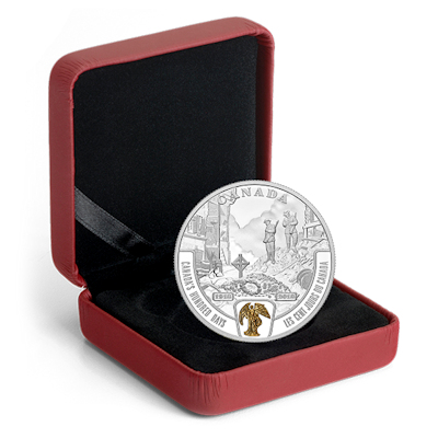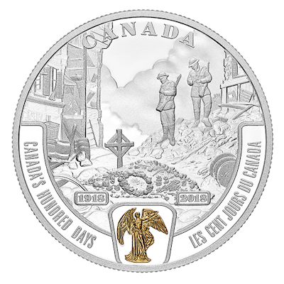 Die Zeit vom 4. August bis 11. November 2018 ging als die „100 Tage Kanadas“ in die Geschichte des Ersten Weltkriegs ein. Kanadische Truppen waren an wichtigen Siegen der Alliierten beteiligt, erlitten aber auch schwere Verluste. In der vorletzten Ausgabe ihrer Serie „First World War Battlefront“ würdigt die Royal Canadian Mint dieses Kapitel der kanadischen Historie mit einer bedachtsam gestalteten Silbermünze, die teilweise vergoldet ist. Die Auflage ist auf 10.000 Exemplare limitiert.