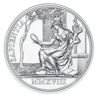 Als Besonderheit dieser Serien haben sich die Designer nicht nur an den Motiven, sondern auch an den Prägungen der Epoche orientiert. So kam das auffallend hohe Relief zustande. Die Silbermünze trägt den Nennwert von 20 Euro und hat einen geriffelten Rand. Umseitig findet man eine Allegorie der Weisheit (Sapientia), unten die Jahreszahl 2018. Die in höchster Proof-Qualität geprägt Silbermünze hat einen Feingehalt von 925/1000, das Feingewicht bei 20,74 Gramm. Der Durchmesser liegt bei 34 Millimetern. Sie wird im Etui und mit nummeriertem Echtheitszertifikat ausgegeben. Die Serie umfasst außerdem die Ausgaben Milde und Gottvertrauen, Gerechtigkeit und Härte sowie Tapferkeit und Entschlossenheit.