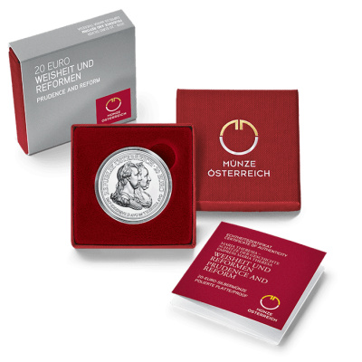 Mit „Weisheit und Reformen“ schließt die Münze Österreich ihre Silbermünzen-Serie „Maria Theresia – Schätze der Geschichte“ ab, die anlässlich des 300. Geburtstags der Monarchin 2017 gestartet wurde. Das Motiv der Abschlussausgabe zeigt sie zusammen mit ihrem Sohn und Nachfolger Joseph II. Umseitig findet man eine Allegorie der Weisheit. Die Auflage des Sammlerstücks mit besonders hohem Relief ist auf 30.000 Stück limitiert.