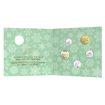 Schon wieder der Vierundzwanzigste! Aber keine Panik, es ist nur der 24. Oktober. Bleibt also noch genug Zeit, um Weihnachtsgeschenke zu kaufen. Auswahl gibt es schon genug – zum Beispiel das Holiday Gift Set 2018 der Royal Canadian Mint. Es enthält einen prägefrischen kanadischen Kursmünzensatz inklusive einer Dollarmünze mit Weihnachtsmotiv, die nur in diesem Set ausgegeben wird. Verpackt sind die fünf Münzen in eine hübsche Karte mit guten Wünschen für die Weihnachtszeit.