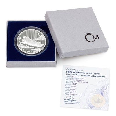 Die in höchster Proof-Qualität geprägte Silbermünze hat einen Durchmesser von 37 Millimetern. Sie enthält 1 oz Feinsilber und hat einen Feingehalt von 999/1000. Der Münzrand ist glatt. Als Ausgabeland fungiert Niue, deshalb ist auf der Wertseite Königin Elizabeth II. abgebildet. Sie ist hier praktisch die „Frau im Mond“, denn die Mondreisekapsel aus einem weiteren Jules-Verne-Klassiker hält Kurs auf ihr Porträt. Rechts davon ist der mechanische Elefant abgebildet, oben die Albatros und unten die Nautilus. Am Rand findet man den Nennwert von 1 Dollar. Das Sammlerstück hat eine streng limitierte Auflage von nur 1.000 Stück. Es wird verpackt in ein Etui und inklusive eines nummerierten Echtheitszertifikats ausggeben.