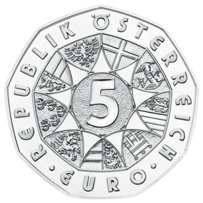 Die Karte, in die die Silbermünze verpackt ist, nimmt dieses Bild noch einmal auf. Die Münze selbst ist neuneckig und zeigt auf der Wertseite die neun Österreichischen Landeswappen. Sie sind im Kreis um die Wertangabe 5 in der Mitte angeordnet. Die Silbermünze hat einen Durchmesser von 28,50 Millimetern und ein Feingewicht von 1/4 oz. Der Feingehalt liegt bei 925/1000. Geprägt in der Qualität handgehoben ist dieses Sammlerstück ein wunderschöner Glücksbringer für Musikfans und Münzsammler. Bleibt nur noch eines zu sagen: „Prosit Neujahr!“