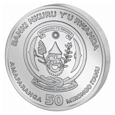 Der große Schnabel und die markanten Federn am Hinterkopf sind auf dem Motiv der Silbermünze sehr schön herausgearbeitet. Das Sammlerstück hat einen Durchmesser von 40 Millimetern und einen geriffelten Rand. Der Feingehalt liegt bei 999/1000. Als Ausgabeland der African Ounce fungiert die Republik Ruanda in Ostafrika. Auf der Vorderseite zeigt die Silbermünze deshalb das ruandische Staatswappen, einen von zwei Schilden flankierten Korb, über dem die Sonne steht. Daneben sind eine Sorghumpflanze (eine Art Hirse) und eine Kaffeepflanze zu sehen. Der Nennwert beträgt 50 Amafaranga (Ruanda-Francs). Während die Proof-Ausgabe auf 1.000 Stück limitiert ist, wird die Stempelglanz-Ausgabe unlimitiert ausgegeben; sie wird allerdings nur während des Ausgabejahres geprägt.