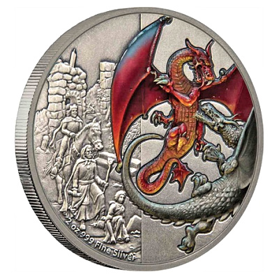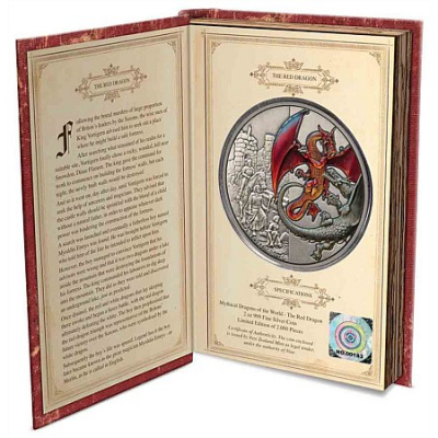 Mythische Drachen sind das Thema einer neuen, faszinierenden Silbermünzen-Serie der New Zealand Mint. Die neuen Drachenmünzen sind nicht nur aus 2 oz Feinsilber geprägt und detailreich gestaltet, sondern auch mit Farbapplikationen veredelt. Gleich zum Auftakt gibt es mit dem Roten Drachen im Kampf gegen seinen weißen Gegenspieler einen Klassiker unter den Drachenlegenden. Die Auflage des Sammlerstücks, das in einem Buch-Etui ausgeliefert wird, ist auf 2.000 Exemplare begrenzt.
