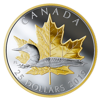 Das Motiv der Silbermünze ist zweigeteilt: Auf der linken Seite sind das Ahornblatt und der Wasservogel naturnah dargestellt. Diese Hälfte steht für die Vergangenheit, denn Eistaucher und Maple Leaf sind schon lange kanadische Symbole. Rechts wird das Bild deutlich abstrakter, man könnte auch sagen: moderner. Die Adern des Ahornblatts sind symmetrisch angeordnet, der Blattrand wird betont. Auch beim Eistaucher sind die Umrisse hervorgehoben. Diese Seite steht für die Gegenwart und weist gleichzeitig darüber hinaus. Unten ist der Nennwert von 25 CAD verzeichnet, daneben das Prägejahr.