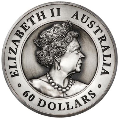 australian-kangaroo-2019-2-kilo-silber-high-relief-wertseiteUmseitig zeigt das Sammlerstück das neue Jody-Clark-Porträt von Königin Elizabeth II. Von den Locken bis zu den Fältchen der in Würde gealterten Monarchin treten auch hier die Details besonders deutlich hervor. Der Nennwert von 60 australischen Dollars ist unten verzeichnet. Verpackt ist diese außergewöhnliche Silbermünze in ein durchsichtiges Präsentationsetui und eine stilvolle schwarze Holzschatulle. Ein nummeriertes Echtheitszertifikat gehört dazu, denn die Auflage dieses Sammlerstücks beträgt nur 200 Exemplare.