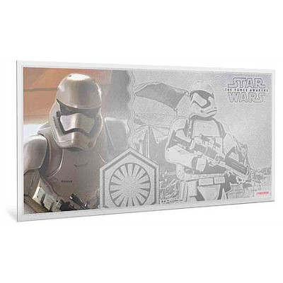 Nach Rey, Finn, Kylo Ren, Leia Organa mit Han Solo, Poe Dameron und BB-8 fehlt noch eine wichtige Figur aus dem Star-Wars-Film „Episode VII – Das Erwachen der Macht“ – wobei Figur es hier nicht ganz trifft, denn die Sturmtruppen sind natürlich viele. Durch ihre identische Rüstung sind sie allerdings meist nicht zu unterscheiden. Der Sturmtruppler beschließt die Silberbanknoten-Serie der New Zealand Mint. Das Sammlerstück ist wie dei Vorgänger-Ausgaben teilweise koloriert und hat eine Auflage von 50.000 Stück.