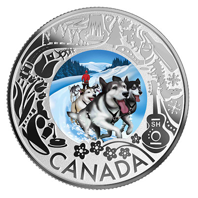 Die Silbermünze zeigt ein Hundegespann in vollem Lauf. Aufspritzender Schnee, weiße Hügel und blauer Himmel vermitteln ein Gefühl von Dynamik und Winterspaß. Auf dem silbernen Rahmen rund um dieses kolorierte Bild sind verschiedene weitere Themen der Serie abgebildet. Wenn man oben anfängt, ist im Uhrzeigersinn unter anderem Folgendes zu erkennen: die Niagarafälle, ein Rodeoreiter, eine Weinprobe, ein Hundeschlitten, eine Gitarre, die für die Folkmusik steht, Kirschblüten, Ahornsirup, der verführerisch auf einen Teller Pfannkuchen tropft, ein Wal, eine Tulpe, eine Küstenstraße und die Aurora borealis über einem Nadelwald. Das Sammlerstück ist in Proof-Qualität geprägt und hat einen Durchmesser von 27 Millimetern. Das Gewicht liegt bei 7,26 Gramm. Der Feingehalt beträgt 99,99 Prozent. Auf der Wertseite der Silbermünze mit einem Nennwert von 3 CAD ist das Susanna-Blunt-Porträt von Königin Elizabeth II. zu sehen. Die Silbermünze wird gekapselt, im Etui und zusammen mit einem nummerierten Echtheitszertifikat ausgegeben.