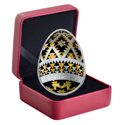 Ein riesiges Osterei ist das Wahrzeichen der Stadt Vegreville in der kanadischen Provinz Alberta. Genauer gesagt, handelt es sich um ein Pysanka, ein bemaltes Ei nach ukrainischer Tradition. Das Vegreville Pysanka war das Vorbild für eine neue Silbermünze der Royal Canadian Mint. Das Sammlerstück ist natürlich eiförmig und außerdem mit aufwendigen Farbapplikationen geschmückt. Die Auflage ist auf nur 5.000 Stück limitiert.