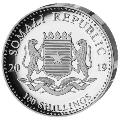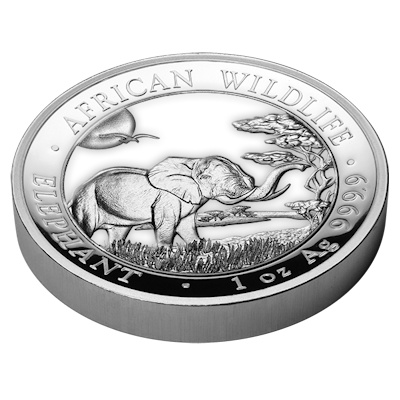 Auf einem Rahmen rund um das Elefantenmotiv sind die Angaben zu Feingewicht und Feingehalt (99,99 Prozent) sowie der Name African Wildlife Elephant aufgeprägt. Die in höchster Proof-Qualität geprägte Silbermünze aus 1 oz Feinsilber hat einen Durchmesser von 35,0 Millimetern und einen glatten Rand. Ausgabeland ist die Republik Somalia, deshalb zeigt die Wertseite neben dem Nennwert von 100 Shillings deren Wappen: Zwei aufgerichtete Leoparden halten einen Schild mit einem silbernen Stern. Hergestellt werden die Sammlerstücke jedoch als Agenturausgaben. Die African Wildlife Elephant in High Relief wird gekapselt, mit nummeriertem Echtheitszertifikat und im Etui ausgegeben.