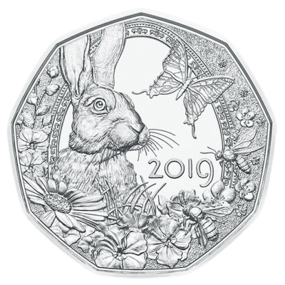 Die Ostermünze 2019 der Münze Österreich feiert das Frühlingserwachen. Im Mittelpunkt steht der Feldhase als Symbol der Fruchtbarkeit und des Frühlings. Aber auch ringsum gibt es auf der Silbermünze mit dem Nennwert von 5 Euro jede Menge zu entdecken. Ausgeliefert wird das Sammlerstück in einer fröhlichen Blisterverpackung: perfekt, um einem Münzsammler frohe Ostern zu wünschen!