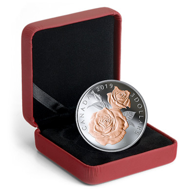 Rechts am Rand ist der Nennwert von 3 CAD zu finden. Die Silbermünze ist in höchster Proof-Qualität geprägt und enthält 1/4 oz Silber bei einem Feingehalt von 99,99 Prozent. Sie hat einen Durchmesser von 27 Millimetern und einen geriffelten Rand. Natürlich ist auch die Namenspatronin der Rose auf der Silbermünze zu finden. Umseitig ist das Susanna-Blunt-Porträt von Königin Elizabeth II. zu sehen. Das blühende Sammlerstück wird im Etui und inklusive eines nummerierten Echtheitszertifikats ausgegeben.