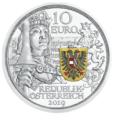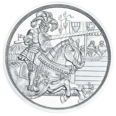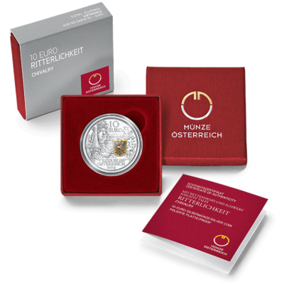 Der letzte Ritter wird Maximilian I., Erzherzog von Österreich und Kaiser des Heiligen Römischen Reichs deutscher Nation, genannt. Die Münze Österreich macht den Herrscher, der vor 500 Jahren starb, auf der ersten Ausgabe ihrer neuen Serie „Mit Kettenheimd und Schwert“ zum Inbegriff der Ritterlichkeit. Die aufwendig gestaltete Silbermünze zeigt ein Porträt Maximilians neben seinem farbig bedruckten Wappen und umseitig eine Turniereszene. Die Auflage ist auf 30.000 Stück limitiert.