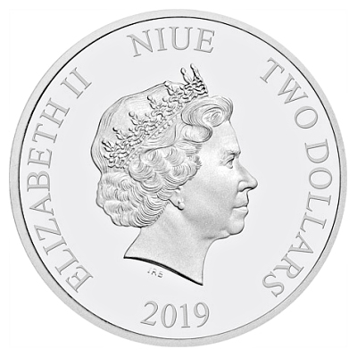 muppets-fozzie-baet-1-oz-silber-koloriert-wertseiteIm Vordergrund der Silbermünze ist eine kolorierte Version von Fozzie Bär zu sehen, komplett mit seinem Porkpie-Hut und der gepunkteten Schleife. Der silberne Hintergrund zeigt zwei weitere Fozzies, wobei einer ein Suppenhuhn hochhält. Oben findet man auf schwarzem Hintergrund das Muppets-Logo unter dem Disney-Schriftzug, denn seit 2004 gehören auch die Muppets zu Disney. Die Silbermünze enthält 1 oz Feinsilber (Feingehalt 999/1000). Sie hat einen Durchmesser von 40 Millimetern und einen geriffelten Rand. Auf der Wertseite ist das Porträt von Königin Elizabeth II. zu sehen. Das Ausgabeland ist Niue. Der Nennwert ist mit zwei Dollars angegeben. Auch ein nummeriertes Echtheitszertifikat gibt es dazu. Außerdem ist das Sammlerstück gut verpackt in einen Acrylblock und einen Shipper im Seriendesign.