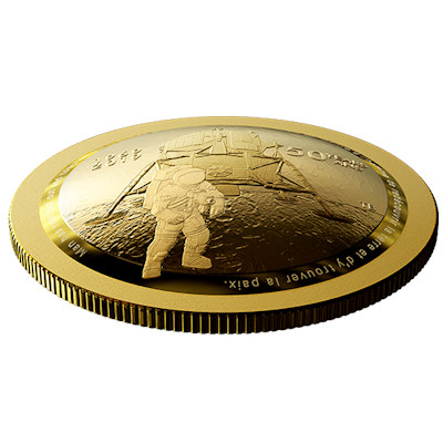 Gewölbte Goldmünze 50 Jahre Mondlandung jetzt kaufen auf Silbertresor.de
