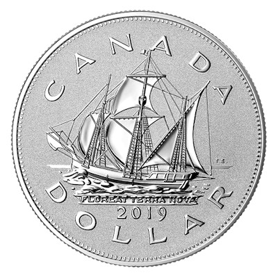 rcm-matthew-1-oz-silber-piedfort-3Für den Silverdollar von 1949 entwarf Thomas Shingles ein Motiv mit einem Dreimaster, der durch die Wellen pflügt. Unter dem Wasser findet man noch die Aufschrift „Floreat Terra Nova“ (Möge die neue Welt blühen). Abgesehen von der Jahreszahl 2019 wurde dieses Motiv detailgetreu auf die neue Silbermünze übertragen. Die Piedfort-Münze ist jedoch doppelt so dick wie der Silberdollar. Der Durchmesser liegt  bei 34 Millimetern. Die Münze enthält 1 oz Feinsilber bei einem Feingehalt von Feingehalt 99,99 Prozent. Der Nennwert beträgt 1 Dollar. Der Münzrand ist geriffelt. Umseitig findet man das Porträt von König George VI., der 1949 das offizielle Staatsoberhaupt Kanadas war. Das Sammlerstück ist in reverse proof geprägt und wird im Etui ausgeliefert. Ein nummeriertes Echtheitszertifikat gehört dazu.