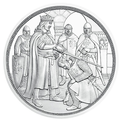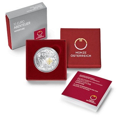 mit-kettenhemd-und-schwert-abenteuer-silber-koloriertMit der Silbermünze Abenteuer setzt die Münze Österreich ihre Serie „Mit Kettenhemd und Schwert“ fort, die mit der Ausgabe Ritterlichkeit startete. Für die zweite Edition hat sich die Prägeanstalt einen Mann ausgesucht, der lange als der Inbegriff des Rittertums galt: Gottfried von Bouillon, Anführer des ersten Kreuzfahrerheers und Eroberer Jerusalems. Außerdem zeigt das Sammlerstück die Zeremonie des Ritterschlags. Die Auflage der Silbermünze ist auf 30.000 Stück limitiert.