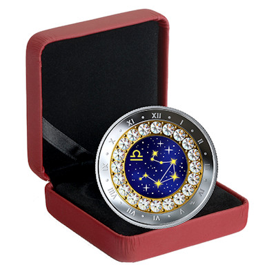 Vom 24. September bis 23. Oktober feiern die Waagen Geburtstag – Zeit, sich um ein Geschenk zu kümmern! Für Numismatik-Fans, die Funkeln und Glitzern lieben, ist die neue Ausgabe der Sternzeichen-Serie der Royal Canadian Mint da genau das Richtige. Die Silbermünze ist nämlich nicht nur koloriert, sondern auch noch mit einem Ring aus weißen Swarovski-Kristallen veredelt. Sie hat eine streng limitierte Auflage von nur 4.000 Stück.