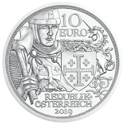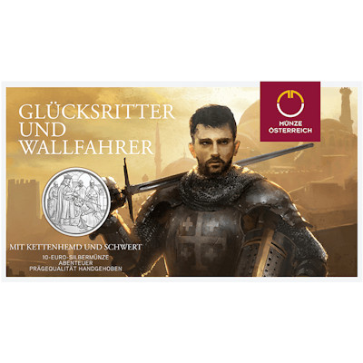 mit-kettenhemd-und-schwert-abenteuer-silber-blisterAbenteuer gehörten für Ritter zum Berufsbild. Nicht selten endeten sie jedoch tödlich. So auch für zahlreiche Glücksritter, die sich im 11. Jahrhundert dem Heer der Kreuzfahrer anschlossen und ins Heilige Land zogen. Einer von ihnen war Gottfried von Bouillon, der auf der zweiten Ausgabe der Silbermünzen-Serie „Mit Kettenhemd und Schwert“ der Münze Österreich abgebildet ist. Neben einer Ausgabe in höchster Prägequalität Polierte Platte gibt es auch eine handgehobene Edition, die eine Auflage von 30.000 Stück hat.
