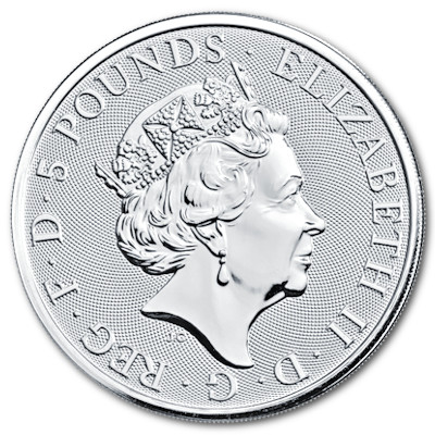 Die Silbermünzen-Serie „The Queen’s Beasts“ umfasst zehn Ausgaben; bereits erschienen sind der englische Löwe, der rote Drache von Wales, das schottische Einhorn, der Greif, der Schwarze Stier, der Falke der Plantagenets und das Yale of Beaufort.