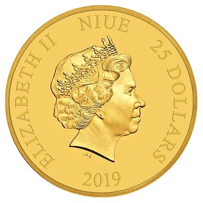 star-wars-bb-8-quarter-oz-gold-wertseiteDie Goldmünze ist natürlich in höchster Proof-Qualität geprägt und liebevoll gestaltet. Neben den Droiden zeigt sie das Logo des Films. Am Rand ist auch ein Copyright-Vermerk zu finden, der bestätigt, dass es sich um ein lizenziertes Produkt der Lucasfilm Ltd. handelt. Die Münze hat einen Feingehalt von 99,99 Prozent und enthält 1/4 oz Feingold. Der Durchmesser beträgt 22 Millimeter. Das Sammlerstück mit Ausgabeland Niue zeigt umseitig das Porträt von Königin Elizabeth II. Der Nennwert liegt bei 25 Dollars. Ausgegeben werden die Goldmünzen im stilvollen Holzetui und mit einer Umverpackung im Star-Wars-Design. Ein nummeriertes Echtheitszertifikat gibt es dazu.