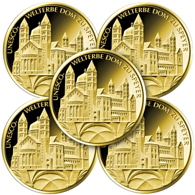 Seit 2003 gibt die Bundesrepublik Deutschland Goldmünzen mit den deutschen UNESCO-Welterbestätten als Motiv heraus. 2019 geht die beliebte Serie mit der Ausgabe zum Speyerer Dom, einer der ersten Welterbestätten in Deutschland, zu Ende. Wie die Vorgänger wird auch diese von allen fünf deutschen Prägestätten hergestellt. Münzsammler haben also Gelegenheit, sich zum Abschluss noch einmal einen Komplettsatz zu sichern.