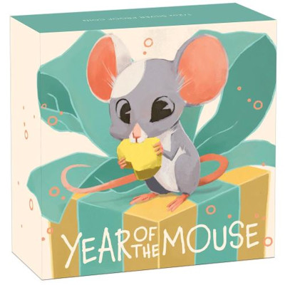 Über dem Kopf des Mäuschens ist das chinesische Schriftzeichen für Maus zu finden, darüber die Aufschrift „Year of the Mouse“. Die Silbermünze aus 1/2 oz Feinsilber (Feingehalt 99,99 Prozent) ist in höchster Proof-Qualität geprägt. Der Durchmesser liegt bei 32,6 Millimetern. Der Münzrand ist geriffelt. Das Ausgabeland dieser Serie ist Tuvalu, deshalb zeigt die Wertseite das Porträt von Königin Elizabeth II., die das offizielle Staatsoberhaupt des Landes ist. Das Sammlerstück hat einen Nennwert von 50 Cents. Das Etui mit dem durchsichtigen Deckel ist ideal, um die Silbermünze gut geschützt auszustellen. Außerdem ist sie in einen bunten Karton mit Mäusemotiv verpackt. Ein nummeriertes Echtheitszertifikat gehört dazu.