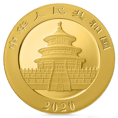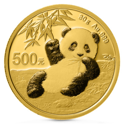 Dank der hochwertigen Stempelglanz-Prägung ist die typische Fellzeichnung des Pandas gut zu erkennen. Links ist der Nennwert verzeichnet. Er liegt bei der 30-Gramm-Goldmünze bei 500 Yuan. 1982 gab China die ersten Panda-Goldmünzen aus. Seit 2016 werden sie wie Goldbarren in Gramm-Einheiten geprägt. Das Gewicht und der Feingehalt von 999/1000 sind oben am Rand verzeichnet. Die Goldmünze hat einen Durchmesser von 32,0 Millimetern. Umseitig zeigt sie einen Teil des Himmelstempels in Peking, darunter die Jahreszahl. Der Münzrand ist geriffelt. Die Pandas werden einzeln verschweißt ausgegeben.