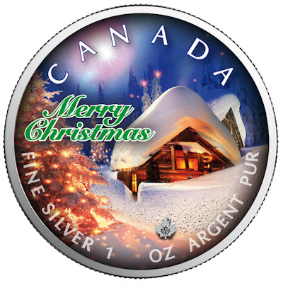 maple-leaf-silent-night-2019-1-oz-silber-koloriert-2Glitzernder Schnee, mit Lichtern geschmückte Nadelbäume und eine kleine Hütte, aus deren Fenster warmes Licht nach draußen scheint: Mehr Weihnachtsromantik als auf dieser Silbermünze geht nicht. Sie ist genau das Richtige für Numismatik-Fans, die sich weiße Weihnachten wünschen. Man kann sich gut vorstellen, dass in dieser Winternacht nichts zu hören ist außer dem Knirschen des Schnees und vielleicht dem Klingeln kleiner Glöckchen, wenn Santas Rentierschlitten vorbeikommt. Vervollständigt wird das Motiv von dem Schriftzug „Merry Christmas“. Das Ahornblatt hat in einer kleinen Variante ebenfalls Platz gefunden. Es zeigt auch die Jahreszahl 2019.