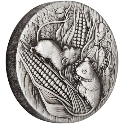 Silbermünze mit Antik-Finish zum Jahr der Maus