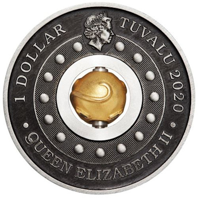 Die Silbermünze ist mit einem Antik-Finish überzogen, das für einen schönen Kontrast zur goldglänzenden Perle in der Mitte sorgt. Der Münzrand ist geriffelt. Das Sammlerstück hat einen Durchmesser von 40,60 Millimetern bei einer maximalen Stärke von 4,0 Millimetern. Es enhält 1 oz Feinsilber bei einem Feingehalt von 99,99 Prozent. Auf der Wertseite wurde das Porträt von Königin Elizabeth II. nach oben verschoben, um dem Mäusehintern Platz zu machen. Links von der Queen ist der Nennwert von 1 Dollar verzeichnet, rechts das Prägejahr und das Ausgabeland Tuvalu. Ausgegeben wird die Silbermünze im Etui und zusammen mit einem nummerierten Echtheitszertifikat. Der Shipper ist schwarz und mit roten Mäusen dekoriert.