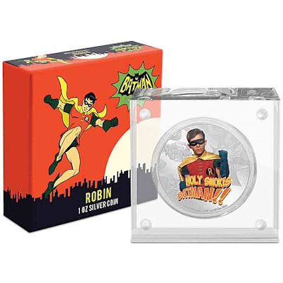 Während Batman und seine Erzrivalen Pinguin und Joker immer wieder auf der Leinwand zu sehen sind, hatte der junge Helfer der Fledermaus schon lange keinen Auftritt mehr. In der Batman-Serie aus den Sechzigern war das noch ganz anders: Robin gehörte zu Batman wie das Batmobil. Natürlich bekommt er auch eine eigene Ausgabe in der Silbermünzen-Serie der New Zealand Mint. Die Auflage ist streng limitiert auf 1966 Stück.