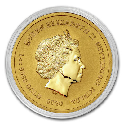 Unter vollen Segeln kreuzt die Royal Fortune jetzt auf der Goldmünze der Perth Mint. Natürlich darf bei einem solchen Motiv auch das Symbol der Piraten nicht fehlen, der Totenkopf. Er ist gleich dreimal abgebildet: Ein Schädel erhebt sich neben der Fregatte aus den Fluten. Direkt daneben findet man übrigens das P-Zeichen der Prägeanstalt. Die Umschrift, die den Namen des Schiffes und des Kapitäns verzeichnet, wird ebenfalls von zwei Totenköpfen untergliedert. Die Wertseite zeigt das Porträt von Königin Elizabeth II. Ausgabeland ist Tuvalu. Der Nennwert liegt bei 100 Dollars. Die Goldmünze mit einem Feingeahlt von 99,99 Prozent ist in Stempelglanz-Qualität geprägt. Sie enthält 1 oz Feingold und wird einzeln gekapselt ausgegeben.