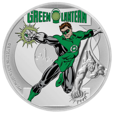 Die in höchster Proof-Qualität geprägte Silbermünze zeigt im Hintergrund das Green-Lantern-Logo, einen Kreis mit zwei Querbalken. Im Vordergrund präsentiert der Superheld sich von seiner schlagfertigen Seite. Eine der beiden Abbildungen ist koloriert. Das Sammlerstück hat einen Durchmesser von 40 Millimetern und enthält 1 oz Feinsilber (Feingehalt 999/1000). Die Wertseite zeigt das Porträt von Königin Elizabeth II. Sie ist das offizielle Staatsoberhaupt des Ausgabelandes Niue. Der Nennwert beträgt 2 Dollars. Verpackt ist die Silbermünze, die mit nummeriertem Echtheitszertifikat ausgegeben wird, in einen Acrylblock mit Magnetverschluss und einen Shipper im Comic-Design.