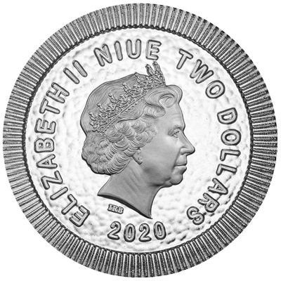 Das Motiv ist von einem geriffelten Rahmen umgeben, der die Silbermünze „stackable“, also stapelbar, macht. Bei diesem Sammlerstück bietet sich das natürlich nicht an. Es wird dementsprechend auch einzeln gekapselt und verpackt in eine Produktkarte ausgegeben. Diese zeigt unter anderem ein Foto einer antiken Tetradrachmen-Münze. Die in Stempelglanz-Qualität geprägte Silbermünze hat einen Durchmesser von 39,0 Millimetern. Die Wertseite zeigt das Rank-Broadley-Porträt von Königin Elizabeth II., wie es bei Münzen mit dem Ausgabeland Niue üblich ist. Der Nennwert liegt bei zwei Neuseeland-Dollars.