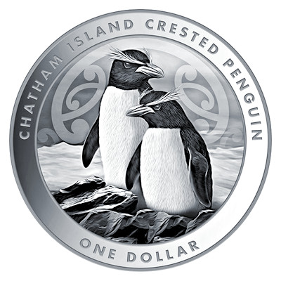 chatham-island-crested-penguin-1-oz-silberJedes Jahr bringt die New Zealand Post Münzen mit dem Nationaltier des Landes, dem Kiwi, heraus. Dieses Jahr widmet sie der faszinierenden neuseeländischen Fauna eine weitere Silbermünze. Der Star des Motivs ist allerdings schon ausgestorben: Es handelt sich um eine Art von Schopfpinguinen, die nur auf den Chatham Islands heimisch war – den Chatham Island Crested Penguin. Die Auflage ist auf 25.000 Stück limitiert.
