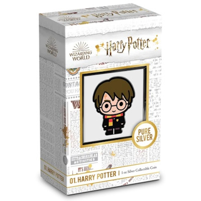 chibi-harry-potter-1-oz-silber-koloriert-verpackungSieben Bücher, acht Filme, ein Theaterstück und Spin-offs umfasst das Harry-Potter-Universum inzwischen. Der Zauberer kann also locker in der Liga der DC Superhelden und Jediritter mitspielen. Bei der New Zealand Mint gibt es schon einige Ausgaben aus seiner magischen Welt, zum Beispiel die Silbermünzen Hogwarts Castle und Hogwarts Express oder die Silberbanknoten mit den Häusern von Hogwarts. Außerdem gibt es eine Serie mit den Harry-Potter-Filmplakaten, in der bereits die Editionen The Sorcerer’s Stone und The Chamber of Secrets erschienen sind.
