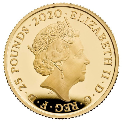 music-legends-elton-john-quarter-oz-gold-wertseiteDamit hat er sich seine Music-Legends-Editon sicher verdient. Die in höchster Proof-Qualität geprägte Goldmünze hat einen geriffelten Rand und zeigt auf der Wertseite das Jody-Clark-Porträt von Königin Elizabeth II. Seitlich ist der Nennwert von 25 britischen Pfund angegeben. Das Sammlerstück enthält 1/4 oz Feingold bei einem Feingehalt von 99,99 Prozent. Der Durchmesser liegt bei 22,00 Millimetern. Die Goldmünze wird gekapselt, im Etui und mit einer Umverpackung, auf der der junge Elton John zu sehen ist, ausgegeben. Ein nummeriertes Echtheitszertifikat gehört auch dazu.