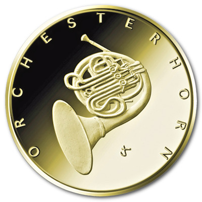 Der Künstler Jordi Truxa, der das Motiv der Goldmünze entworfen hat, hat das Horn so platziert, wie der Musiker es halten würde, mit dem Trichter Richtung Betrachter, der hier quasi zum Zuhörer wird. Randläufig ist der Name des Instruments aufgeprägt. Die Wertseite zeigt den Bundesadler und die Europasterne über dem Nennwert von 50 Euro. Der Münzrand ist geriffelt. Die Goldmünze enthält 1/4 oz Feingold. Sie hat einen Durchmesser von 22 Millimetern und einen Feingehalt von 99,99 Prozent. Sie wird von allen fünf deutschen Prägestätten (Berlin, München, Stuttgart, Karlsruhe und Hamburg) geprägt.
