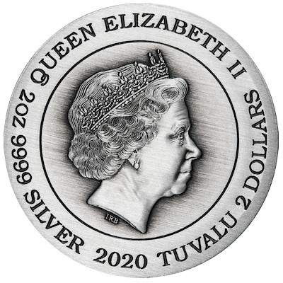 dragon-2020-2-oz-silber-koloriert-3Der Rand der Silbermünze ist glatt. Sie hat einen Durchmesser von 40,69 Millimetern und eine maximale Dicke von 5,86 Millimetern. Das Sammlerstück aus 2 oz Feinsilber hat einen Feingehalt von 99,99 Prozent. Die Wertseite zeigt das Porträt der Königin Elizabeth II. von Ian Rank-Broadley. Ausgabeland ist der Inselstaat Tuvalu. Der Nennwert ist mit 2 Dollars angegeben. Die Silbermünzen werden im Etui und in einer roten Umverpackung ausgeliefert. Ein nummeriertes Echtheitszertifikat gehört dazu.