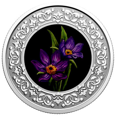 floral-emblems-of-canada-prairie-crocus-silber-koloriertAls einer der ersten Frühlingsboten nach dem Winter sind die Blüten der Prairie crocus genannten Küchenschellenart in Manitoba ein höchst willkommener Anblick. Die lila Blume hat es schon Anfang des 20. Jahrhunderts zum „floral embelm“ der Provinz gebracht – und bekommt deshalb eine eigenen Ausgabe unter den Blumen-Silbermünzen der Royal Canadian Mint. Die Auflage des Sammlerstückes ist auf 4.000 Exemplare limitiert.