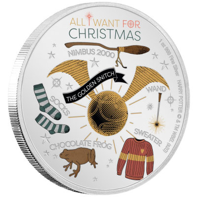 harry-potter-christmas-2020-1-oz-silber-koloriertWas wünscht sich ein Harry-Potter-Fan zu Weihnachten? Ganz klar, einen Zauberstab, einen Nimbus 2000 und Schokofrösche. Wenn das nicht klappt, vielleicht eine Chibi-Silber-Version von Harry oder Hermine? Oder eine Silbermünze mit Filmplakat? Das alles hat die New Zealand Mint im Angebot – und zusätzlich noch die Silbermünze All I Want for Christmas als Weihnachtsausgabe. Letztere ist mit Farbapplikationen gestaltet und hat eine streng limitierte Auflage von nur 3.000 Exemplaren.