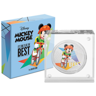 Silbermünze Disney Mickey Mouse – Radfahren jetzt kaufen auf Silbertresor.de